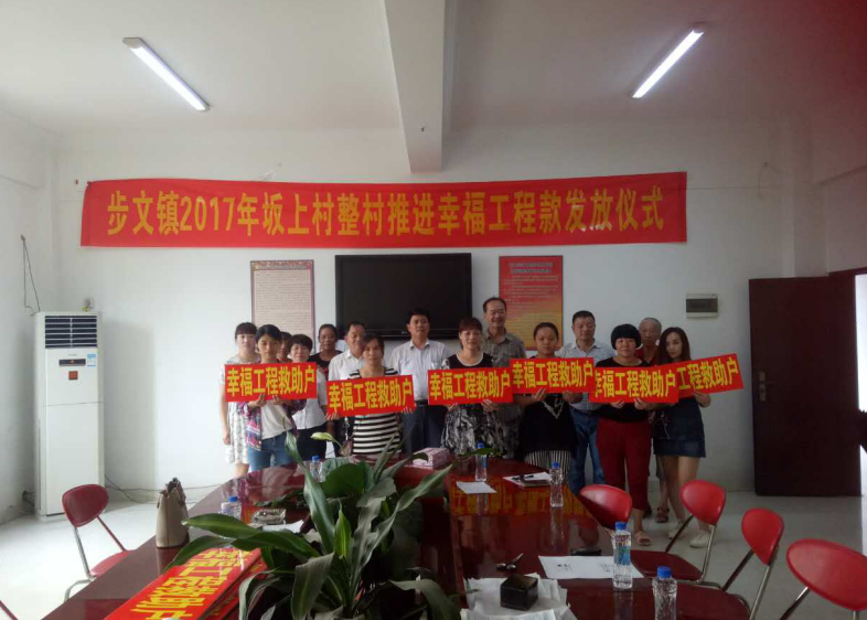 7日31日上午,漳州市龙文区计生协会分别在步文镇、郭坑镇政府举行“幸福工程”帮扶款发放仪式,开展新一轮“幸福工程”帮扶活动。本轮帮扶活动共发放“幸福工程”帮扶款48万元,共帮扶24户计生贫困母亲(每户2万元)发展生产,借款期限2年,主要用于发展种植、养殖、食用菌、商业、加工等项目。