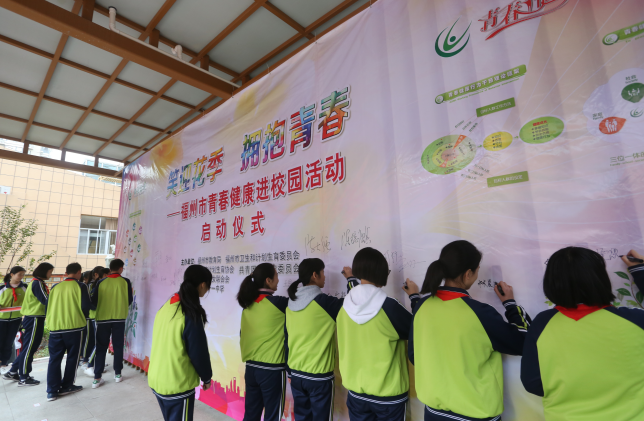 随后,全体与会领导向师生代表赠送《花季的烦恼·青春健康》读本,并与学生代表们在“笑迎花季,拥抱青春”的背景板上郑重签名。仪式后,25所市属中学代表观摩了青春健康讲座。