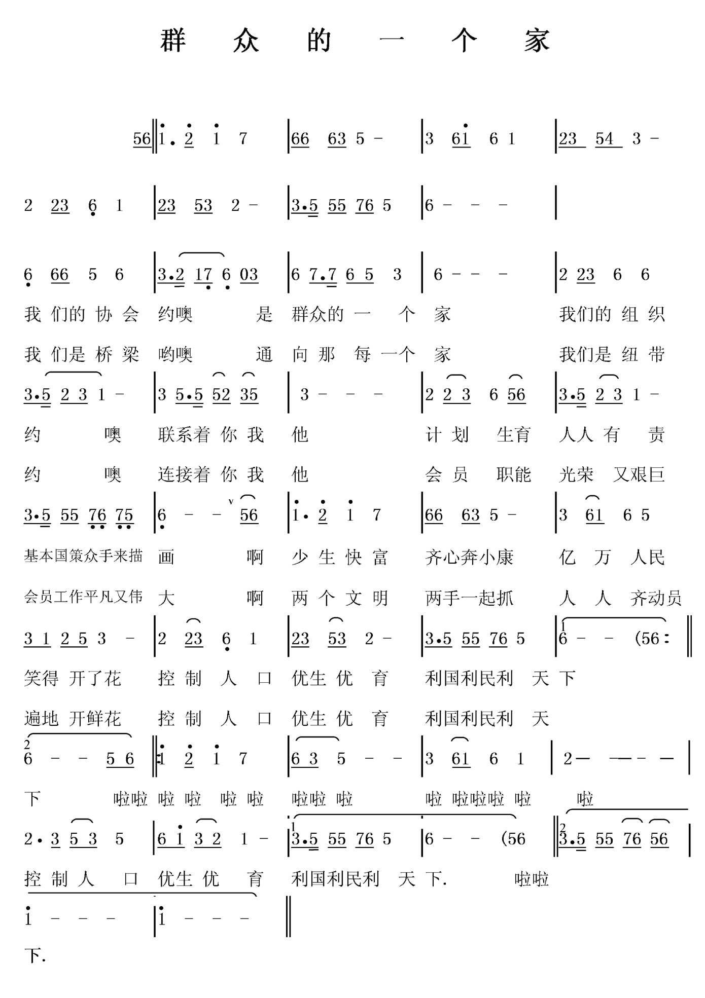中国计划生育协会会歌:《群众的一个家》