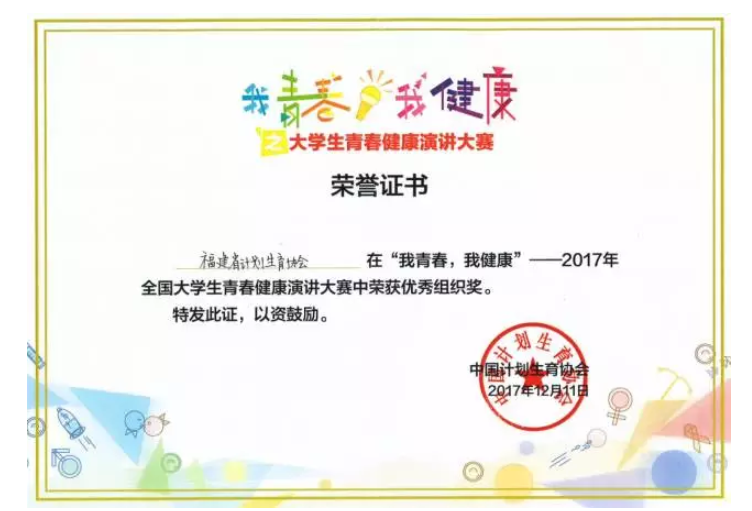 2017年全国大学生青春健康演讲大赛是“我青春,我健康”的系列行动之一,旨在贯彻落实党中央、国务院《“健康中国2030”规划纲要》、《中长期青年发展规划(2016-2025)》中“面向青少年开展性道德、性健康和性安全宣传教育和干预”的有关要求,鼓励青少年以健康、阳光、负责任的积极态度思考和讨论性与生殖健康问题,营造有利于青少年性与生殖健康和权利的社会氛围。(省计生协会组宣部、三明市计生协会)